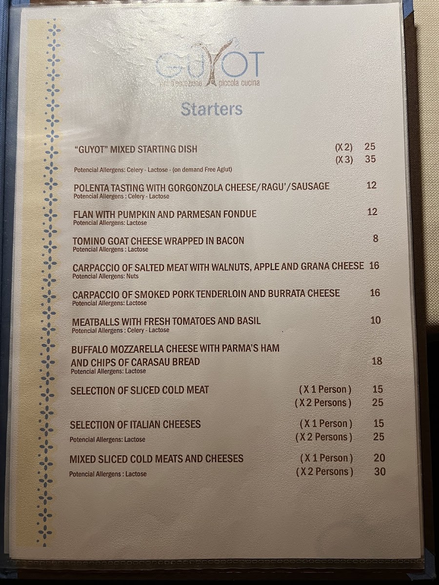 At Guyot, the star of the menu is undoubtedly the risotto, with the Milanese Risotto and Chianti Risotto often lauded for their rich flavors and generous portions. Diners rave about the tenderness of the braised meat and the creamy polenta that accompanies their meals. Starters like the cheese and charcuterie plate perfectly complement the main attractions.